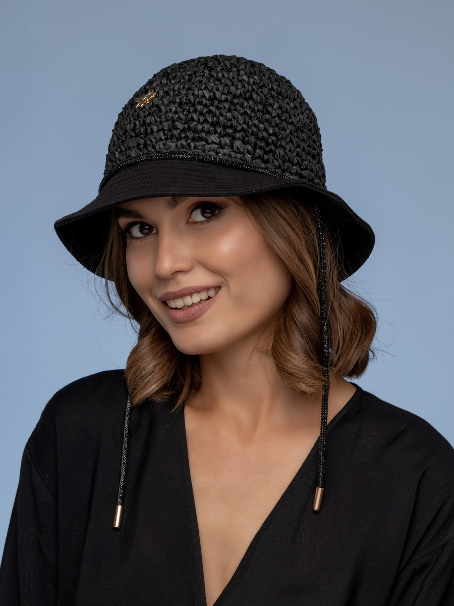 Панама женская из рафии с джинсовыми полями "Сочи"