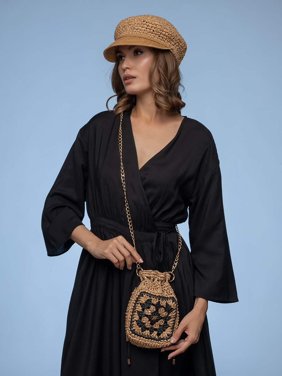 Сумка с цепью женская из рафии "Гвоздика"