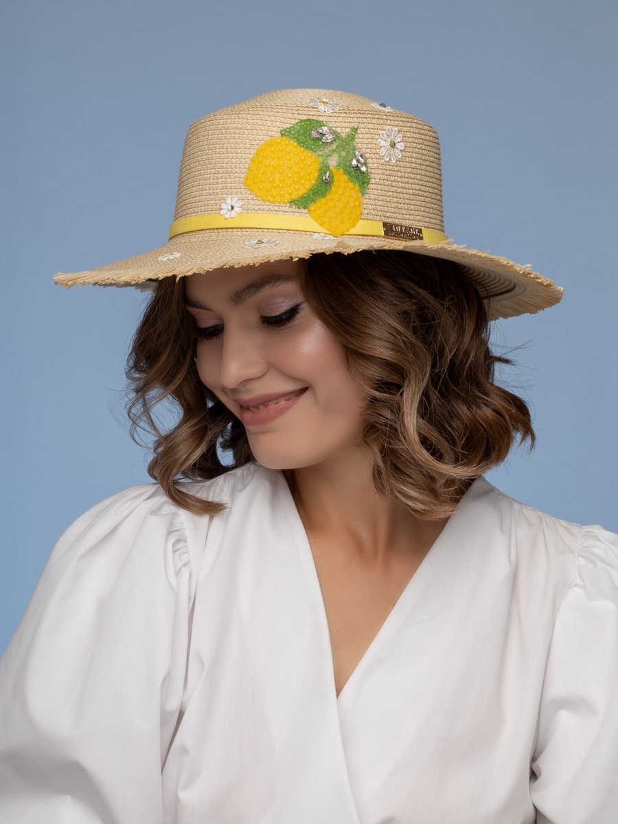 Шляпа канотье женская с узкими полями "Лимончелло"